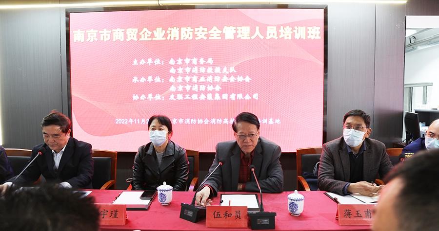 2022年11月24日,南京市商贸企业消防安全管理人员培训班在市消防协会高技能人才培训基地举办,40余名学员参加培训。此次培训由南京市商务局、南京市消防救援支队主办,南京市消防协会、南京市商业消防安全协会承办,友联工程安装集团有限公司协办。应急管理部灭火救援专家委员会伍和员顾问、市商务局孙宇瑾副局长、市商务局市场体系建设处蒋玉甫处长、市消防救援支队薛雯处长、江宁区消防救援大队钟鹏副大队长、市商业消防安全协会傅敦汛会长、市消防协会吴学高常务副会长兼秘书长出席培训动员会。