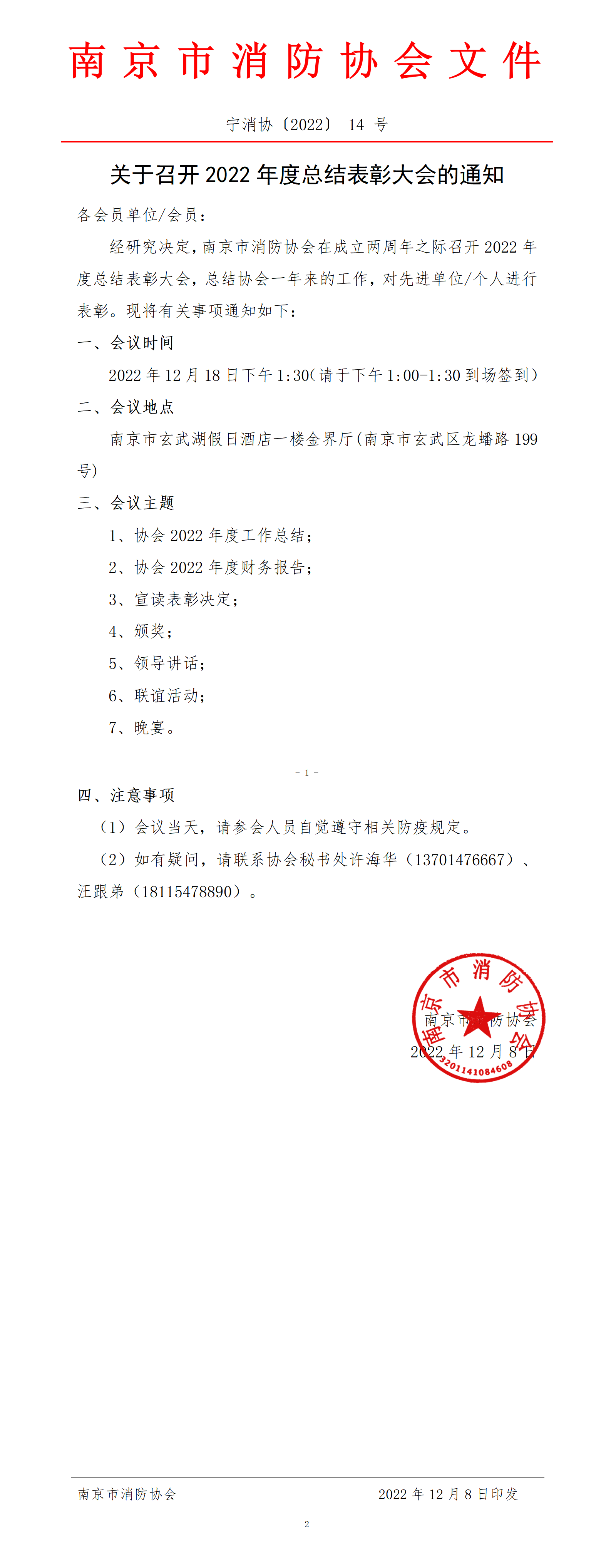 下一篇:关于申报2022年度南京市消防协会先进单位、先进个人的通知