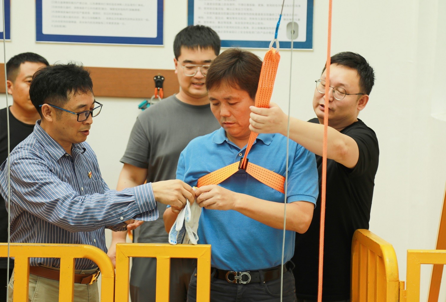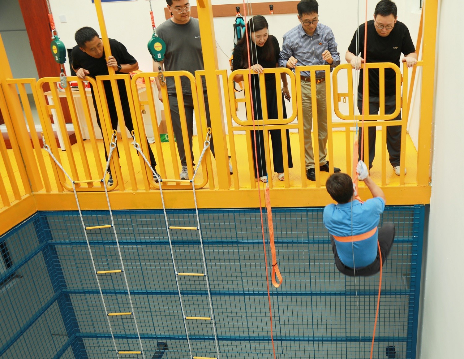 会议结束后,协会领导和工作人员陪同张天宝部长和崔晓红处长参观了认定站的党建展示区和消防设备设施,并示范了逃生缓降器的使用方法。张天宝部长在认定站教员示范后,穿上防护设备,亲自体验了逃生缓降器。参观过程中,两位领导对认定站的设备设施予以肯定,并表示会持续关注我会消防安全管理员认定工作的开展情况。
