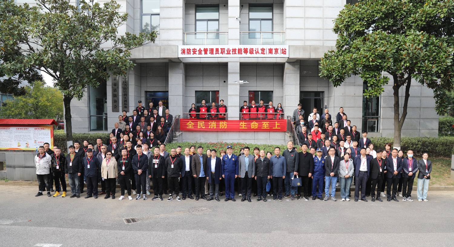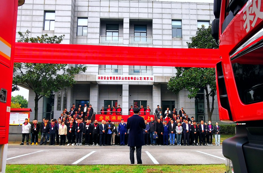 为了大力普及消防安全知识,着力提升物业管理人员的消防安全素质,夯实火灾防控基础,维护消防安全形势稳定。11月13日,由南京市住房保障和房产局、南京市江宁区消防救援大队指导,南京市消防协会、南京市物业管理行业协会主办,南京守快消防培训有限公司承办的以“全民消防,生命至上”为主题的119消防日安全宣传暨应急演练活动,在消防安全管理员职业技能等级认定(江苏南京)站举办。