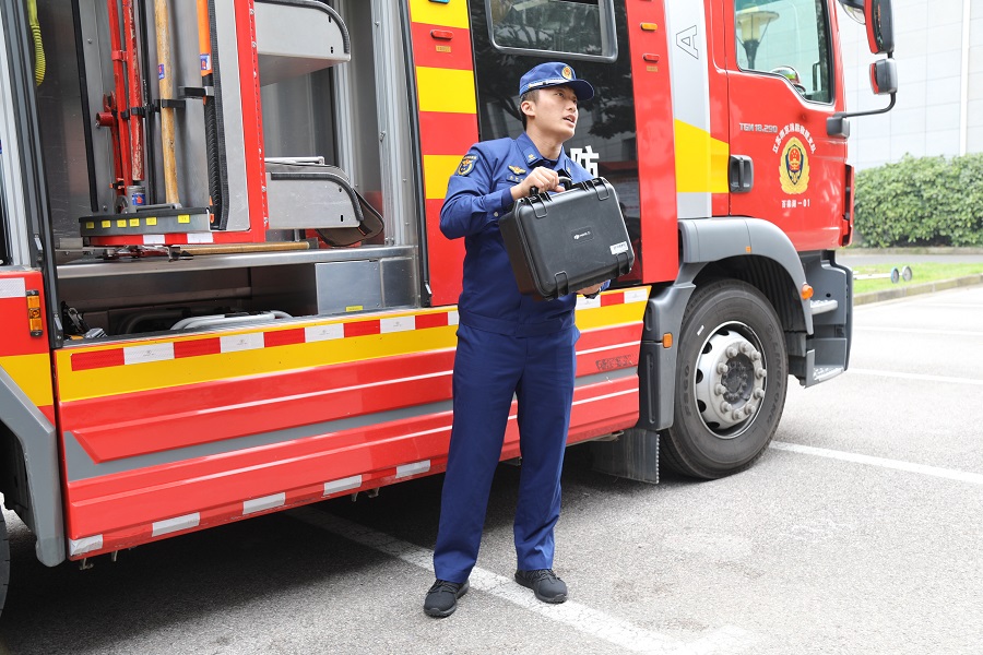 宣传视频结束后,消防救援车上场,专业的消防队员耐心细致地讲解了车辆的各种装备、功能和使用情境,比如热成像技术、定位技术等,可谓是科技满满,安全感满满。在大家一片掌声和叫好声中,两名消防队员为大家演示了消防出水的标准动作,指令清晰,行动迅速,一套流程下来有种行云流水般的美感,让全场惊服。