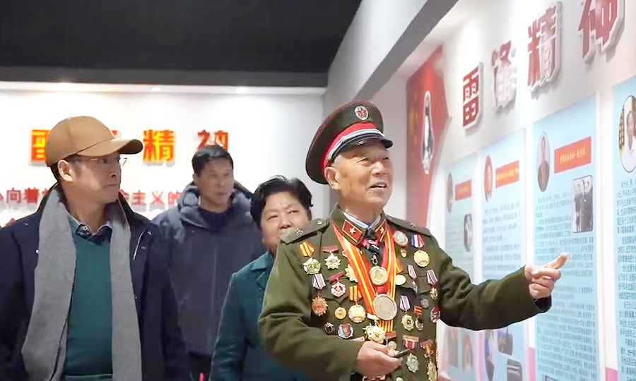 在雷锋文化馆,赵明才老英雄回顾和解说了雷锋从出生到读书、入党、屡获表彰、多次立功、最终因公殉职的生平经历和光荣事迹。他回忆道,“我和雷锋三次见面,两次同住一个房间,通过电话有过书信来往,雷锋是我终身学习的楷模,雷锋精神引领了我一生。”1960年11月8日,雷锋同志引荐赵明才入党,两人同时出席原沈阳军区工程连队整治工作会,并双双被树为标兵,安排在同一间宿舍,两人一起工作、学习、为人民服务,结下了深厚的友谊。雷锋因公殉职后,组织安排他参加追悼会,他也从此下定决心,要一直学习和传承雷锋精神,有一份热发一份光。现在,赵明才同志是全国学雷锋标兵,2024年7月获评“全国模范退役军人”,被称为当代“活雷锋”。